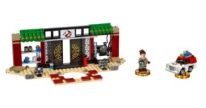 There it is, the original Ghostbusters’ headquarters! This is the biggest set of the theme, with almost 5,000 pieces. To a mere layman, it looks like a regular firehouse with a sidewalk, with a pretty dull color scheme of grey and a tint of red. But we know better! It perfectly represents the classic firehouse in which the Ecto-1 is stored. The building can be unfolded to reveal lots of recognizable scenes, like the slimy encounter with one of the included ghosts (Slimer), or the shiny Animated Toaster from Ghostbusters II. There is even a firefighters’ pole to quickly climb down from the top floor.
