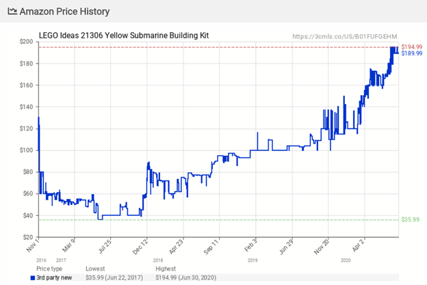 An indicator we can consider is the performance of similar or related sets. Thankfully we do have one that might be worth using for comparison – the previous Beetles set that was released a few years ago (Ideas Yellow Submarine).